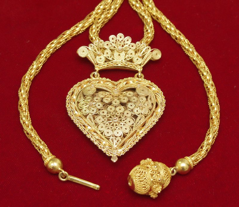 ‘Kurason di Kòrsou’ di oro, pa pasa den kadena, obra maestro di vários platé di Kòrsou. Aki ku kadena china.
