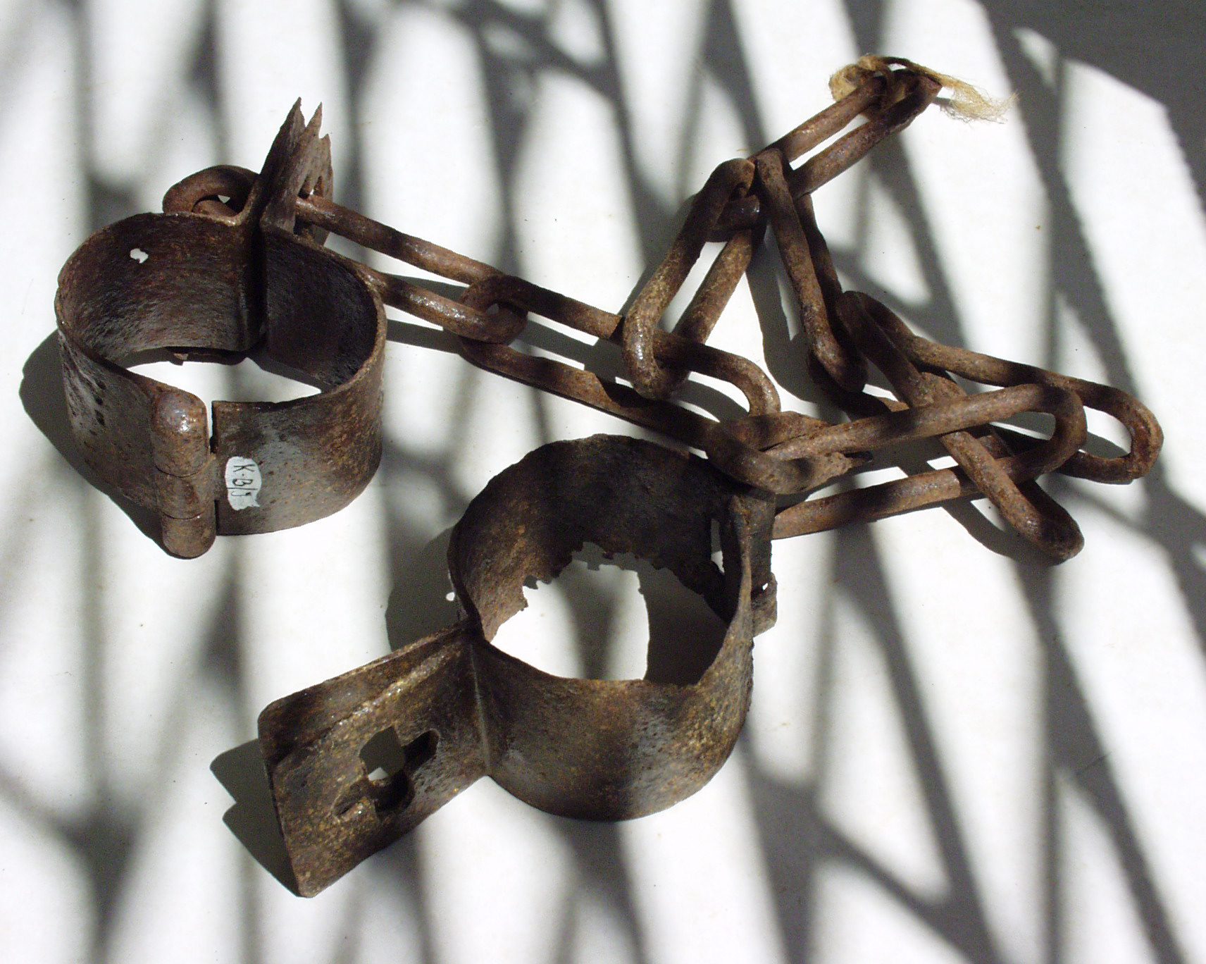 Tabata mara katibu rebelde ku un ‘kadena’ na nan pia. Tur katibu tabatin na nan ènkel un bui, será ku un bout i un kandal. Kolekshon Nationaal Archeologisch Antropologisch Museum.