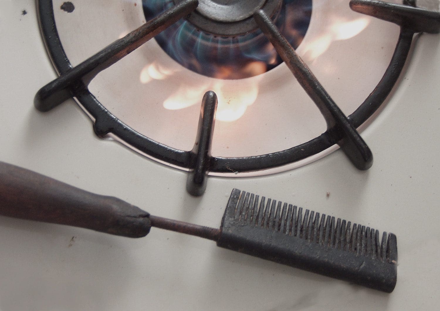 Eind negentiende eeuw. In de Verenigde Staten adverteren producenten met ‘Black Skin Removers’ en ‘Cures for Curls’. Een blanke huid en glad haar bepalen de status van de vrouw. Ook op de Nederlandse Antillen. Dus gaan onze vrouwen massaal de strijd aan tegen kroeshaar. Zij laten hun haar glad strijken – ‘strika kabei’ her’i strika kabei – met een metalen kam. Terwijl de kam opwarmt op een kerosinestoof, wordt het haar in plukjes verdeeld en ingevet. Als de kam op de juiste temperatuur is, wordt hij langzaam door het haar gehaald. De hitte maakt het haar glad. Een tijdelijke oplossing, want zodra het haar nat wordt van water of zweet, schiet de krul er direct weer in.
